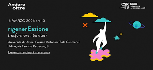 Ripartono il 6 marzo da Udine le tappe territoriali della 14ma edizione del Salone della CSR e dell’innovazione sociale, eventi itineranti con l’obiettivo di valorizzare le esperienze concrete di imprese e territori, promuovere la cultura della sostenibilità, stimolare un’emulazione virtuosa. L'appuntamento friulano, dal titolo "rigenerEazione trasformare i territori", si svolgerà a partire dalle 10 presso l'Università di Udine, Palazzo Antonini (Sala Gusmani), via Tarcisio Petracco, 8.
